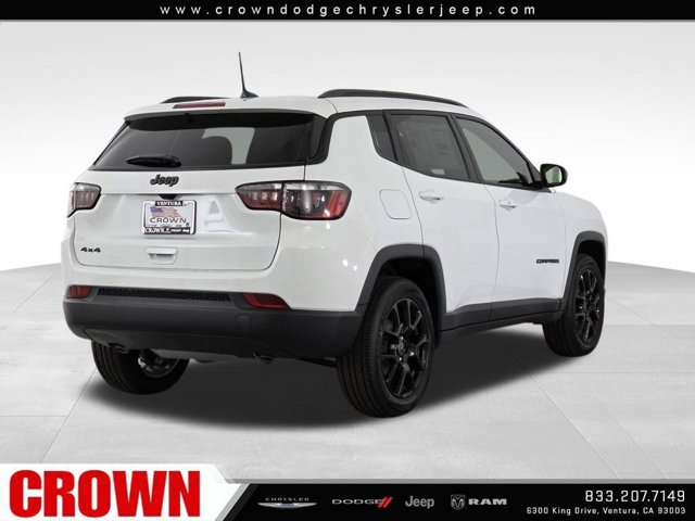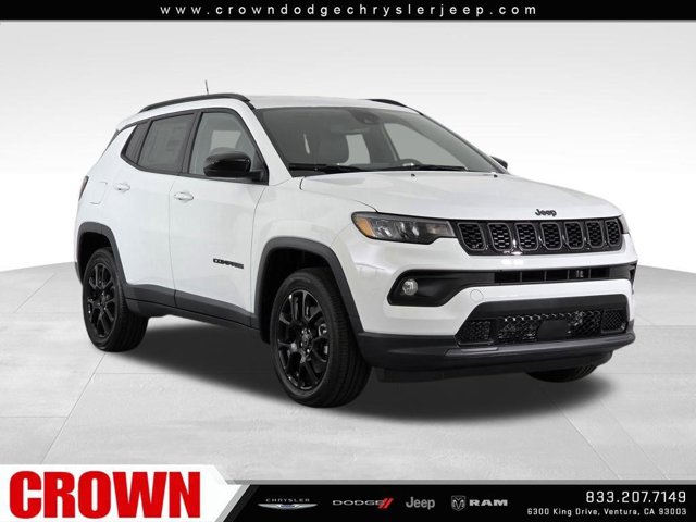 White 2026 Jeep Compass Latitude 4WD 8-Speed Automatic 2.0L I4 DOHC 4WD.Here at Crown Dodge Chrysler Jeep RAM, we believe that great service means more than just offering our new Dodge, Chrysler, Jeep, and RAM lineup. We believe that great service also includes helpful advice, friendly car financing, and the highest quality parts and repairs for your car. Our staff works hard to make your full automotive experience at our car dealership in Ventura, CA enjoyable, and we look forward to helping you today! All vehicles at Crown Dodge have our SWAT security system $995, Nitro $499, Clear Shield $395, touchscreen $395, wheel locks $395, windshield treatment $995, pulse breaking lights $395, paint and fabric protection, $1295pre-installed. 2025 JEEP WAGONEER S CROWN DISCOUNT ITCLUDES.The vehicle depicted is NOT the actual vehicle offered for sale by the Dealer. The photo represents a similar vehicle of the year, make, and model of the actual vehicle. Crown Dodge is home of the low-price guarantee! Price includes: $500 - 2026 National Retail Bonus Cash . Exp. 11/03/2025