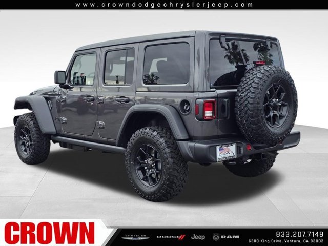 granite crystal metallic clearcoat 2026 Jeep Wrangler Willys 4WD 8-Speed Automatic 3.6L V6 24V VVTHere at Crown Dodge Chrysler Jeep RAM, we believe that great service means more than just offering our new Dodge, Chrysler, Jeep, and RAM lineup. We believe that great service also includes helpful advice, friendly car financing, and the highest quality parts and repairs for your car. Our staff works hard to make your full automotive experience at our car dealership in Ventura, CA enjoyable, and we look forward to helping you today! All vehicles at Crown Dodge have our SWAT security system $995, Nitro $499, Clear Shield $395, touchscreen $395, wheel locks $395, windshield treatment $995, pulse breaking lights $395, paint and fabric protection, $1295pre-installed. STANDALONE APR financing is offered as a standalone incentive and is not eligible for combination with any other offers, incentives, or discounts.The vehicle depicted is NOT the actual vehicle offered for sale by the Dealer. The photo represents a similar vehicle of the year, make, and model of the actual vehicle. Crown Dodge is home of the low-price guarantee!