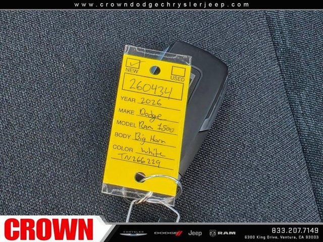 Bright White Clearcoat 2026 Ram 1500 Big Horn/Lone Star 4WD 8-Speed Automatic HEMI 5.7L V8 Multi Displacement VVT eTorqueRecent Arrival!Here at Crown Dodge Chrysler Jeep RAM, we believe that great service means more than just offering our new Dodge, Chrysler, Jeep, and RAM lineup. We believe that great service also includes helpful advice, friendly car financing, and the highest quality parts and repairs for your car. Our staff works hard to make your full automotive experience at our car dealership in Ventura, CA enjoyable, and we look forward to helping you today! All vehicles at Crown Dodge have our SWAT security system $995, Nitro $499, Clear Shield $395, touchscreen $395, wheel locks $395, windshield treatment $995, pulse breaking lights $395, paint and fabric protection, $1295pre-installed. STANDALONE APR financing is offered as a standalone incentive and is not eligible for combination with any other offers, incentives, or discounts. Price includes: $1000 - 2026 West BC Fast Start Engine Retail Bonus Cash . Exp. 03/16/2026 $3500 - 2026 National Retail Consumer Cash . Exp. 03/31/2026