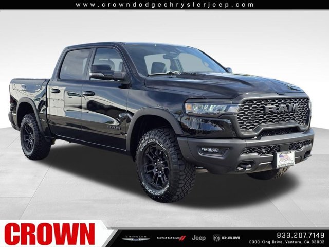 Diamond Black Crystal Pearlcoat 2026 Ram 1500 Rebel 4WD 8-Speed Automatic 3.0L I6Here at Crown Dodge Chrysler Jeep RAM, we believe that great service means more than just offering our new Dodge, Chrysler, Jeep, and RAM lineup. We believe that great service also includes helpful advice, friendly car financing, and the highest quality parts and repairs for your car. Our staff works hard to make your full automotive experience at our car dealership in Ventura, CA enjoyable, and we look forward to helping you today! All vehicles at Crown Dodge have our SWAT security system $995, Nitro $499, Clear Shield $395, touchscreen $395, wheel locks $395, windshield treatment $995, pulse breaking lights $395, paint and fabric protection, $1295pre-installed. STANDALONE APR financing is offered as a standalone incentive and is not eligible for combination with any other offers, incentives, or discounts. Price includes: $1000 - 2026 National Bonus Cash . Exp. 03/02/2026 $3500 - 2026 National Retail Consumer Cash . Exp. 03/02/2026